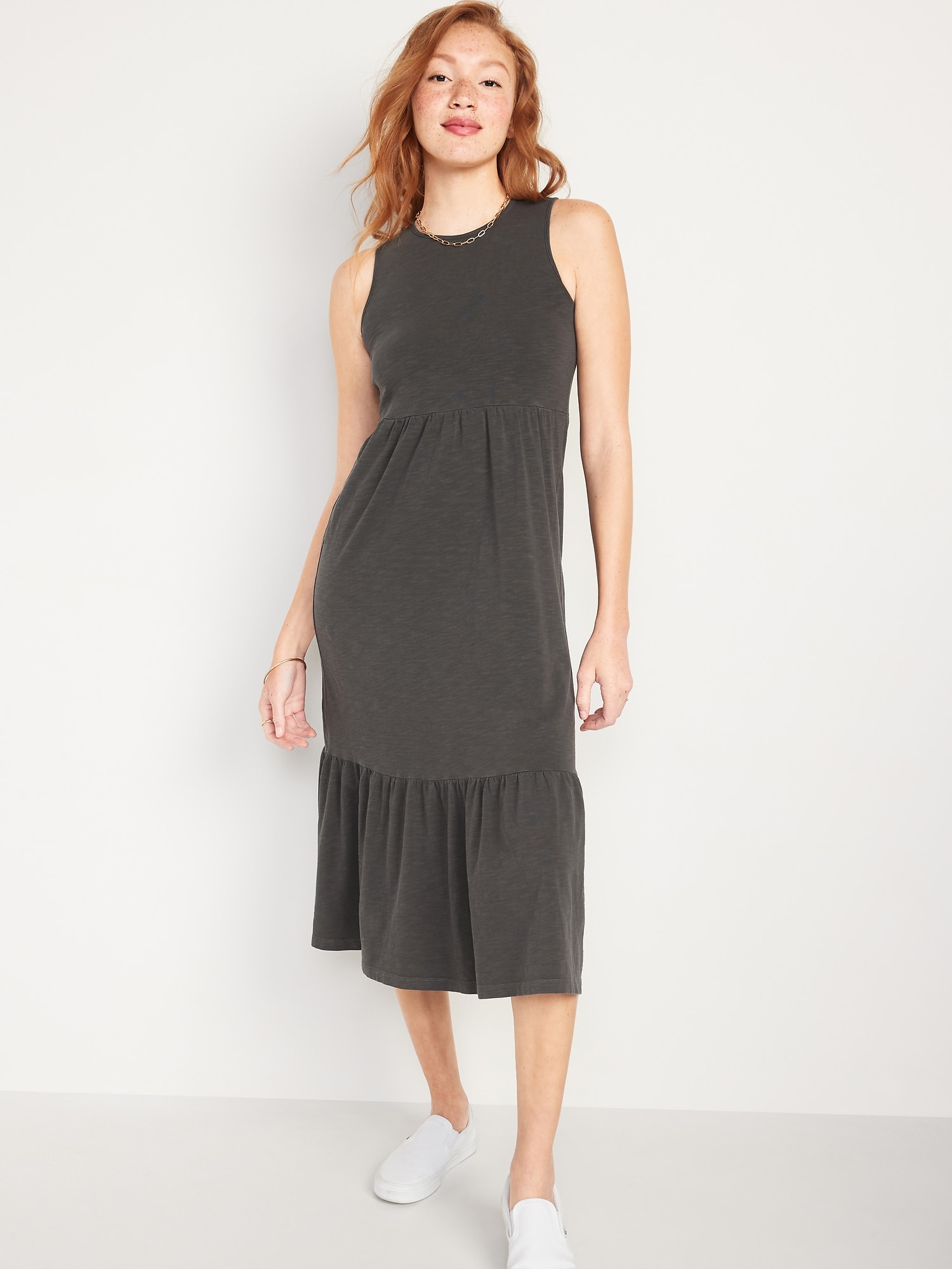 Fit Flare Sleeveless Tiered Midi Dress For Women Old Navy