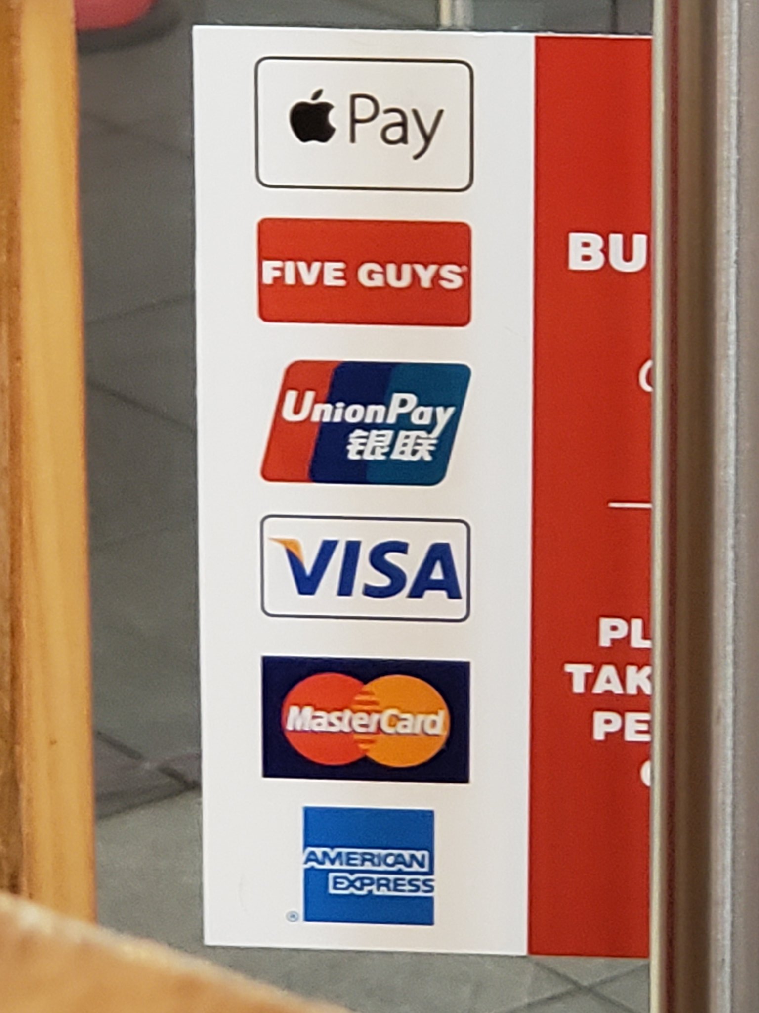 Sebastian On Twitter Ah Yes The 6 Payment Methods Apple Pay Five Guys Unionpay Visa Mastercard And Amex Https T Co Apnhvocd7q Https T Co 3wm4qkhdum Twitter