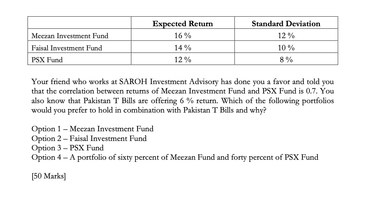 Solved Expected Return 16 Meezan Investment Fund Faisal Chegg Com